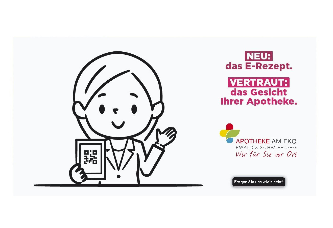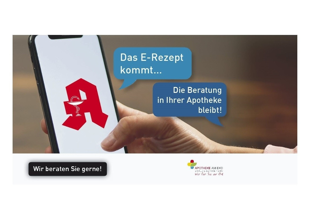Das E-Rezept kommt. In Zukunft werden Rezepte vom Arzt nicht mehr auf Rezeptpapier gedruckt, sondern in elektronischer Form ausgestellt. So selbstverständlich und einfach, wie wir heut zu Tage E-Mails schreiben, statt Briefe auf Papier. Wir freuen uns darauf und wir sind sicher: Für unsere Kunden wird das E-Rezept ein echter Vorteil.